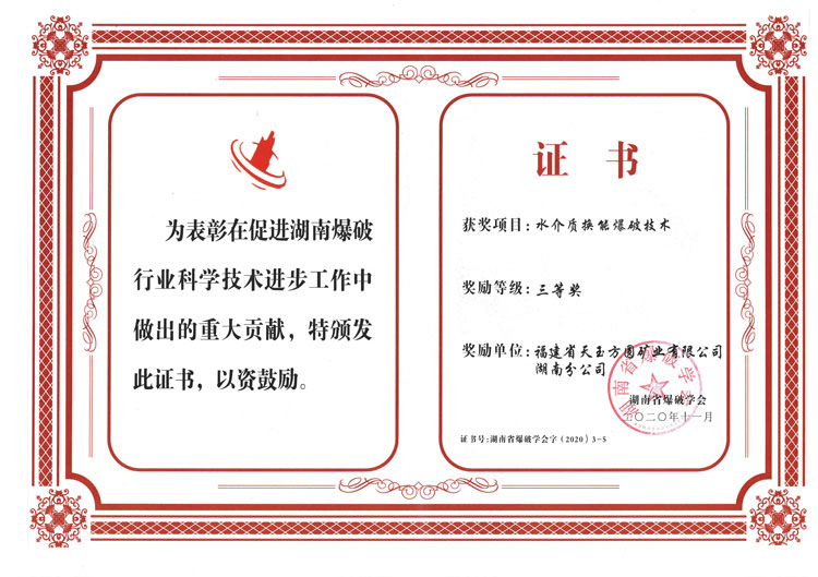 水介質換能爆破技術三等獎證書